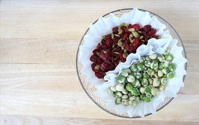 Don’t have a divided bowl? No problem. Just use two coffee filters to separate snacks.