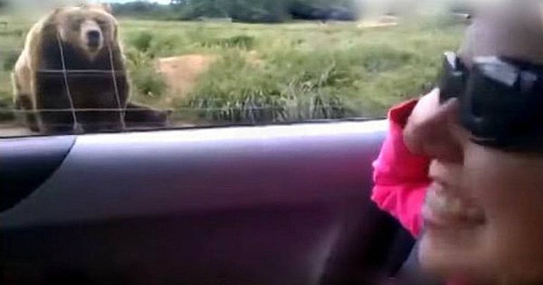 This 300 pound brown bear has a huge personality. One might expect this particular brown bear to be used to visitors and onlookers, but for some reason, this woman brought out his endearingly friendly attitude. At the Olympic Game Farm in Washington, hundreds of animals like this enormous brown bear can be seen, but an interaction like this one was truly unexpected.