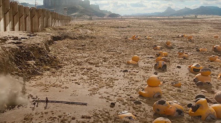 There are two main plot lines within The Electric State: robots vs. humans and the search for Michelle’s presumed dead brother.