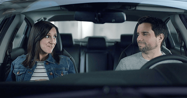 “No, you don’t, I’m always telling you to put your seat belt on,” says the driver’s wife.