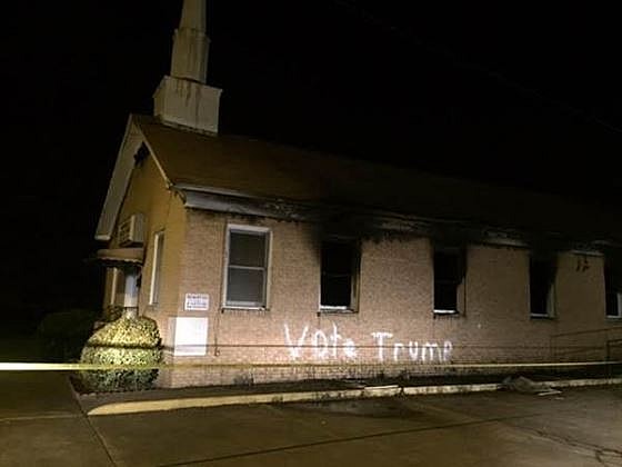 One such church, Hopewell Baptist in Greenville, Mississippi was torched and then had graffiti on the side saying, “Vote Trump.”