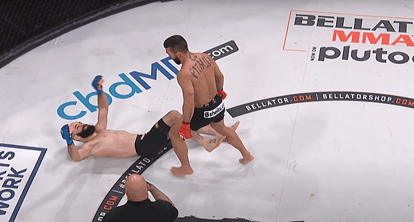 Freire took on Straight Blast Gym’s Pedro Carvalho in the main event of Bellator 252, and before long, he had the featherweight in trouble with big shots.