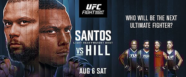 Santos and Hill square off Saturday night from the UFC Apex in Las Vegas. The main card airs live on ESPN and ESPN+.