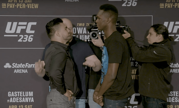 The media day for UFC 236 took place today, and the event provided a glaring, visual reminder of the height discrepancy between Israel Adesanya and Kelvin Gastelum.