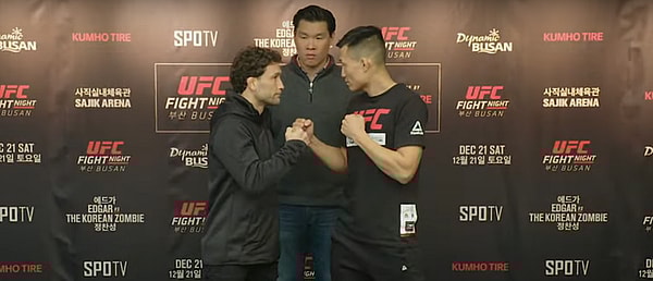 The UFC is in Busan, South Korea for its latest card this week, and media day for the December 21st event is over. As a result, you can watch all of the competitors, including Frankie Edgar and Chan Sung Jung faceoff for cameras below.