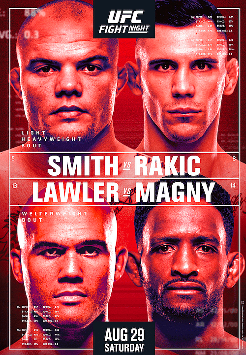 In the card’s main event, Anthony Smith will battle fellow light heavyweight contender, Aleksandar Rakic.