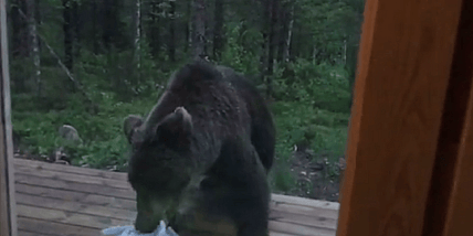 "Shocking footage shows Lawrence Michalchuk encountering the mother bear and her three cubs after the group wandered onto his Bella…