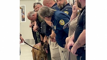 Police officers with the Shreveport Police Department gathered to say goodbye to their beloved K-9, Shadow, before he was put…