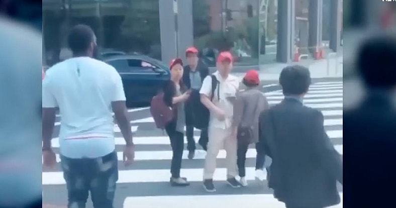 A disturbing video is going viral this week showing a rapper harassing a group of North Korean defectors for wearing MAGA hats.