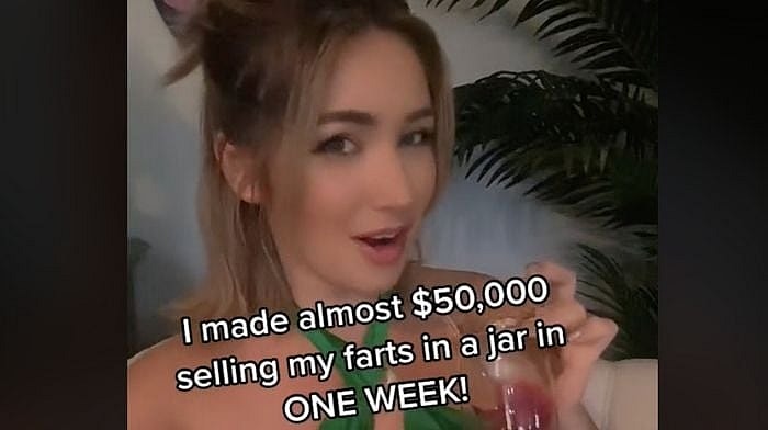 But who are these people actually buying farts in a jar? Can we just consider that for a second? How big is the market audience that she can make six figures in a month??