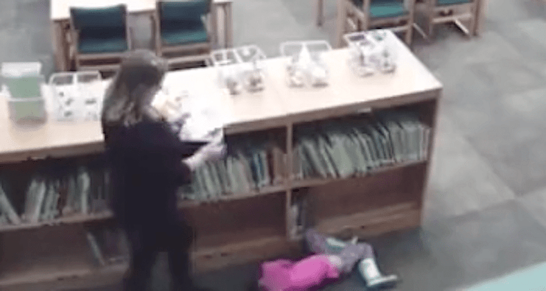 After taking the rest of the class back to their room, Smith can be seen on a library surveillance footage finding the little girl. Smith appears to reprimand the child, expecting her to clear the shelf and return to her class and teacher. However, instead of using her vast education and training in how to deal with young students, Smith chooses to yank the child onto the floor and kick her with her foot.